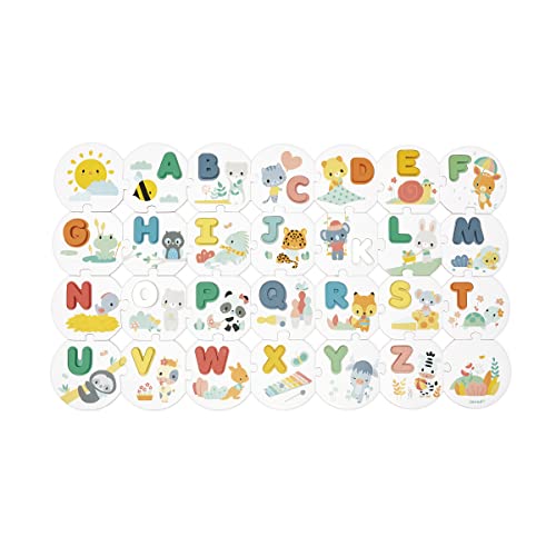 Janod Pure Le Mie Prime Lettere-Puzzle 28 Pezzi + 26 Numeri in Legno-Imparare l'Alfabeto-Giocattolo Multisensoriale-Dai 24 Mesi, J08045, Multicolore