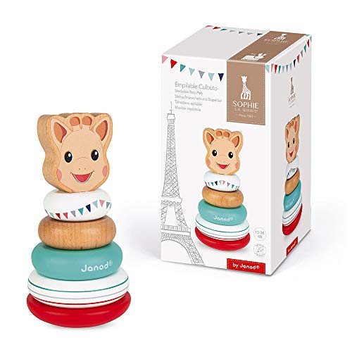 Janod - Wooden Stackable Roly-Poly 'Sophie la Girafe' - Toddler Manipulation Toy - For children from the Age of 1, J09501