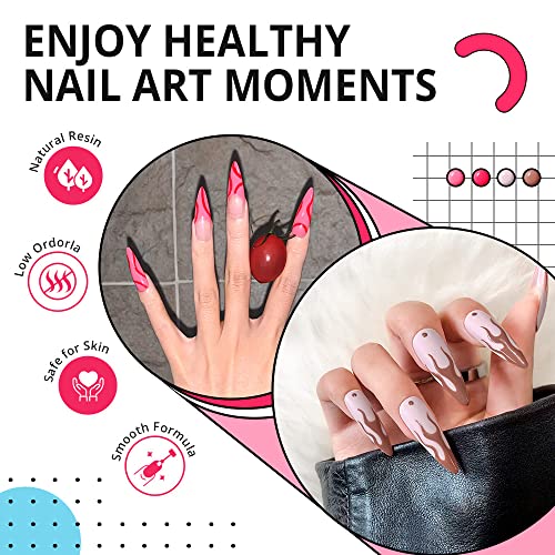 ღDuraturo e Resistente -- Colori resistenti e flessibili, aderisce all'unghia rapidamente e con forza, con una lucentezza permanente e spettacolare.. Adatto per unghie in gel UV / unghie naturali ecc., Ti consente di ottenere un effetto duraturo e super lucido. Facile da maneggiare e da usare, goditi tutto il divertimento e la creatività del tuo nail art design. Inoltre, Cure sotto la lampada dell'asciugacapelli UV / LED ti aiuterà ad asciugare più velocemente.