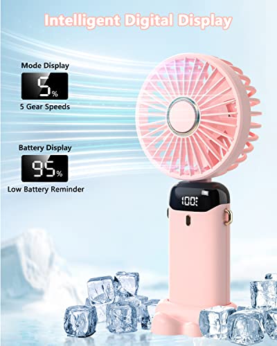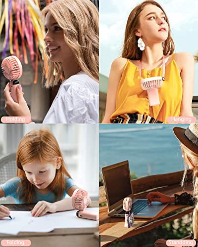 JANREAY Mini ventilatore a mano, ventilatore da scrivania USB, piccolo ventilatore da tavolo con 5 velocità e batteria USB da 3000 mAh, ventilatore elettrico pieghevole per viaggi, ufficio, casa
