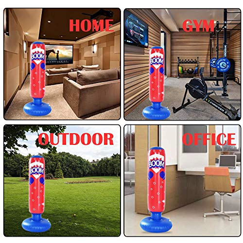 【QUALITÀ PREMIUM】 Questo sacco da boxe per bambini è realizzato in materiale PVC di alta qualità da 0,25 mm, materiale morbido leggero e pieno d'aria, è facile su mani e piedi e non danneggerà le nocche del tuo bambino. Il diametro della base inferiore è di 40 cm, che è più largo di un altro sacco da boxe pesante. La base appesantita può essere riempita d'acqua per farla rimbalzare indietro. Maggiore è il numero di otturazioni, più stabile è. Può essere utilizzato in casa e all'esterno.
