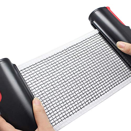 Janzoom - Reti da ping pong, rete retrattile, rete di ricambio per ping-pong, supporto da viaggio mobile, lunghezza regolabile 190 cm, colore: nero/rosso