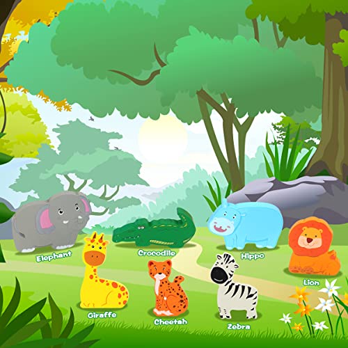 Puzzle in Legno Animali: questo puzzle legno con animali da 7 pezzi è decorato con affascinanti scene di foresta. Le immagini colorate sul tabellone del puzzle 3d rendono interessante ed educativo inserire gli animali nelle scanalature, il che promuove la capacità di coordinazione delle mani e degli occhi del bambino e la capacità di percezione della forma del colore.