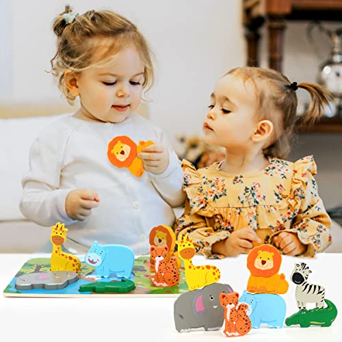 Japace Puzzle bambini 1 Anno e 2 3 Anni, Puzzle Animali 3D con Cornice, Giocattoli Educativi Risveglio Montessori Regalo di Compleanno per Bambini