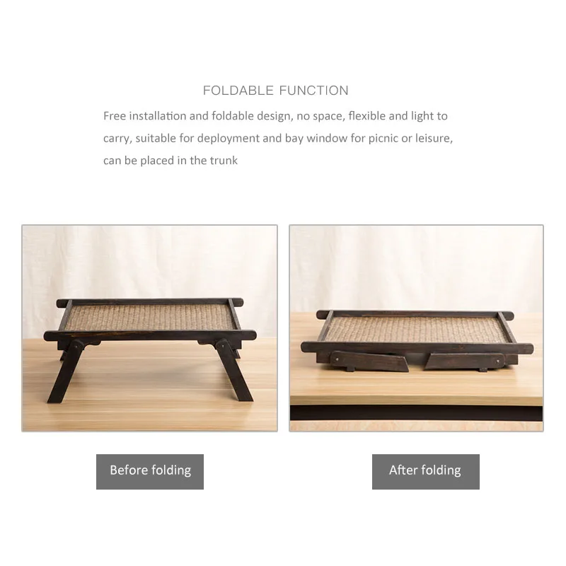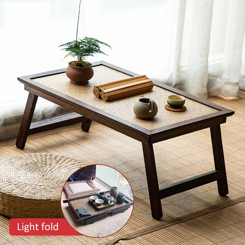 Japanese household folding low table bay window small tea table tatami table retro table solid wood tea table