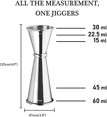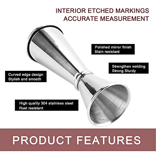 Japanese Style Jigger - Misurino in Acciaio inossidabile per Cocktail, 304 Stainless Steel Jigger Barman Graduato Professionale, Bilancia Incorporata 30/60ml + beccucci, Argento