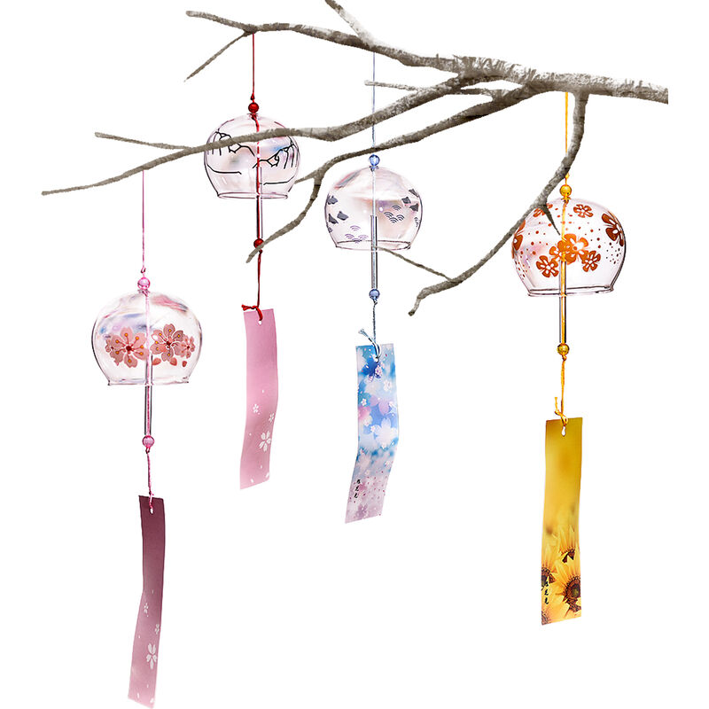 Description:Japanese Wind Chimes are a symbol of good luck and a typical Japanese summer tradition. Natural glass material. These beautiful Japanese Wind Chimes will ring a soothing tone while dancing to the wind. When the wind blows, just enjoy the positive energy brings to you.Specification:Name: Japanese Wind ChimeMaterial: high borosilicate heat-resistant glassSpecifications: diameter 7-8CM/2.76-3.15inch, total length of about 40CM/15.75 inchPacking List:Wind Chimes x 4Note:Please allow slight tolerances in size due to manual measurement, and lighting in photography may result in a difference in color than in real life.