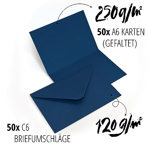 Japun - Set di 50 biglietti pieghevoli vuoti comprese buste, biglietti pieghevoli da progettare, etichettare o stampare - DIN A6 / C6 - blu