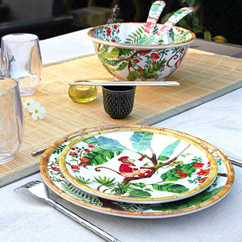 Les Jardins de la Comtesse - Piatto Piano Grande - 28 cm - Scimmie di Bali - Corallo Rosso e Verde - Servizi da Tavola della Collezione Di Stoviglie Infrangibili MelARTmine