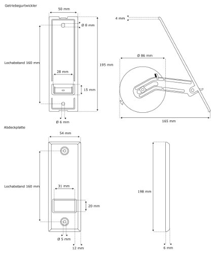 Interasse - distanze tra i fori: 160 mm / Lunghezza della cinghia: max. 12,0 m