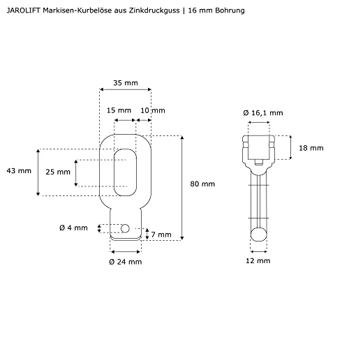 Jarolift Occhiello per Manovella per Tende da Sole, in Pressogetto di Zinco, Ovale, Foro 16 mm