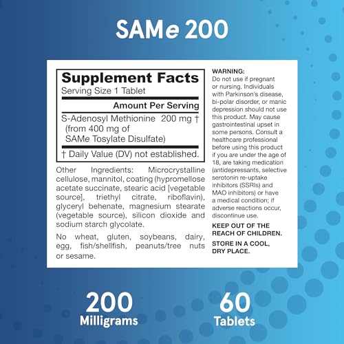 Jarrow Formulas, Natural SAM-e 200, 200mg 60 enteric coated Tablets