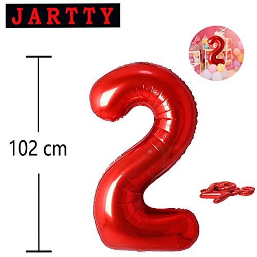 JARTTY Palloncino Compleanno 2 Anni Palloncini Numero 2 Rosso 101 cm Gonfiabile Grande Elio Happy Birthday Festa Decoration
