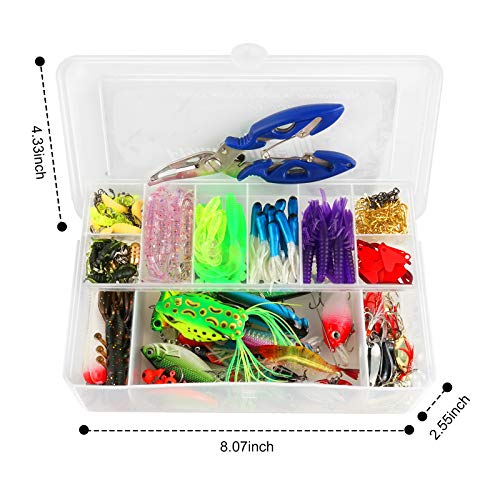 JasCherry Esche da Pesca Miste Artificiali Pesca con Una Scatola di Attrezzatur- Esche Artificiali da Pesca Contiene Esche da Spinning, Rane, Vermi, Esche Dure, Girelle, Pinze, Ganci Singolo