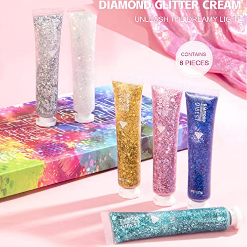 JasCherry Glitter Corpo Gel a 6 Colori Glitter per il Corpo Brillantini Glitter per Occhi, Labbra, Capelli, Viso, Unghie - Makeup Cosmetico Chunky Glitter per Festival, Festa - 25g