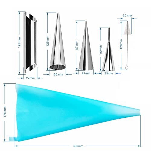 JasCherry 33 Pezzi Acciaio Inox Croissant Cono Form Set con Accessori - 3 Tipi di Cannoli Tubo Stampi da Forno per Torte, Pane, Pasticceria Cream Roll Mold #4