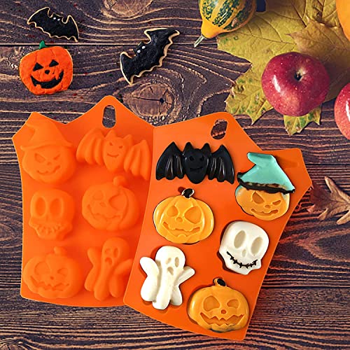 JasCherry 2 Pezzi Stampi da Forno in Silicone di Halloween, Antiaderente Riutilizzabile, Pipistrello Zucca Faccia Cranio Fantasma Stampo di Halloween per fai-da-te Torta Budino Sapone Muffin