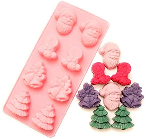 JasCherry Stampi in Silicone per Natale, Stampo per Dolci e Cioccolato, Stampi per Cottura a Motivi Speciale Natalizio, con Babbo Natale, Albero di Natale, Campana e Candela