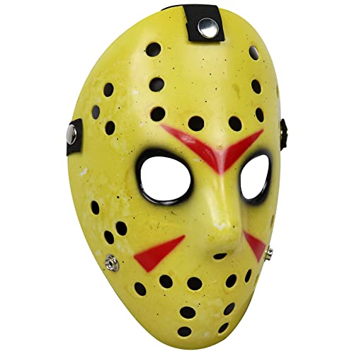 Jason Voorhees Maschera di lusso in PVC Horror Jason Hockey Maschera Halloween uccide Costume Hacker Fancy Dress Uomo Donna Maschera spaventosa (gialla)