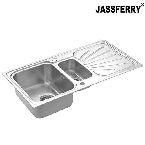 JASSFERRY Lavello da cucina in Acciaio Inox Spazzolato, scolapiatti reversibile Lavandino, con set di rifiuti, una vasca e mezzo