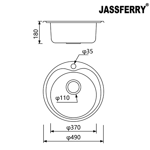 JASSFERRY 49 cm Lavello da Cucina Rotondo Lavandino in Acciaio Inox 1 Vasca
