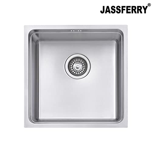 JASSFERRY Lavello da cucina Vasca singola in Acciaio Inox Spazzolato, Sottomontante Lavandino, con set di rifiuti