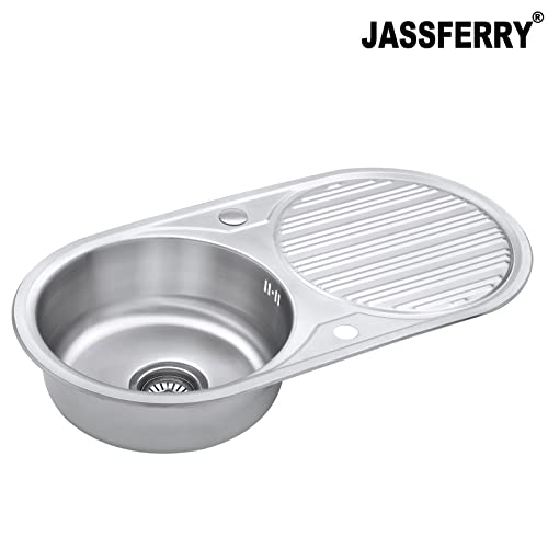 JASSFERRY Lavello da cucina Vasca singola in Acciaio Inox Spazzolato, scolapiatti reversibile Lavandino, con set di rifiuti