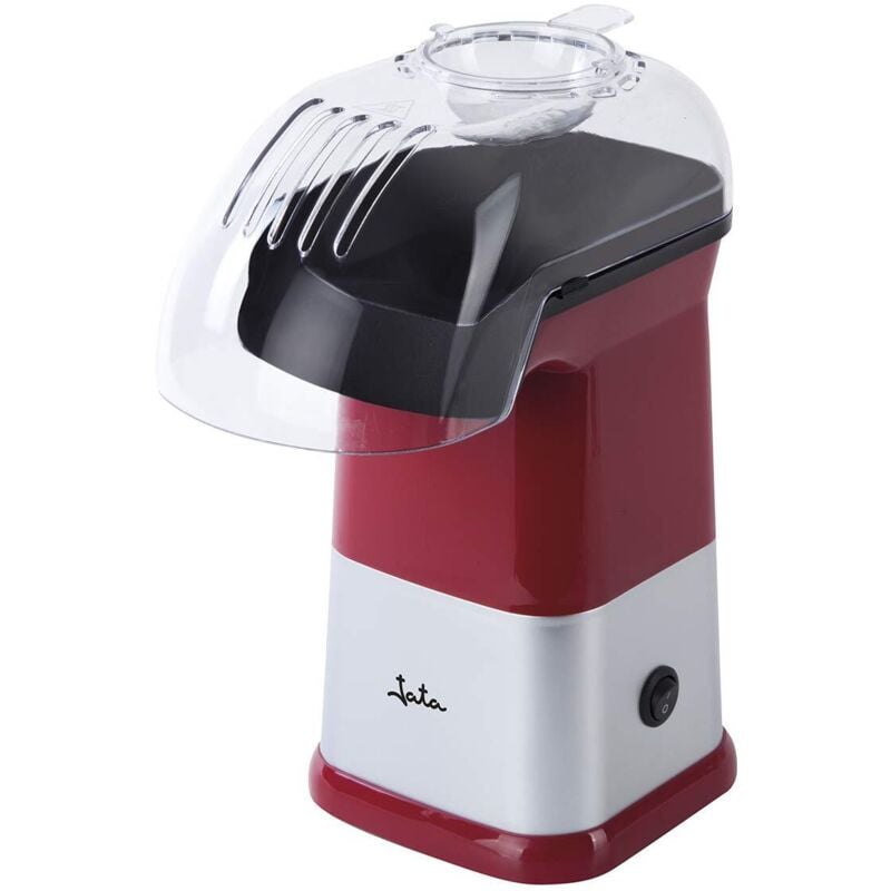 Cuocete popcorn senza olio in 3 minuti con il popcorn popper rosso Jata. Adatto ai bambini grazie all'interruttore di accensione . Popcorn senza olio in 3 minuti. Capacità di 60 g di mais . . Interruttore di accensione. Base antiscivolo. Dispenser. Facile da pulire. Tensione 230 V. Potenza 1.200 W.