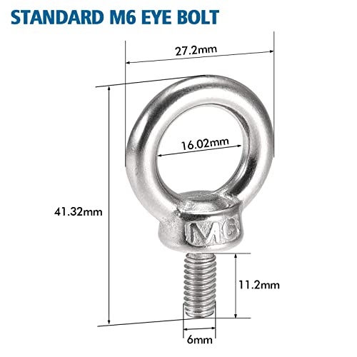 BULLONE OCCHIO DI SOLLEVAMENTO M6 IN ACCIAIO INOSSIDABILE: Il bullone a occhio di pesce è realizzato in acciaio inossidabile 304 di alta qualità, che ha una forte resistenza alla ruggine, resistenza alla corrosione e resistenza all'ossidazione, grande capacità portante e non è facile da deformare.