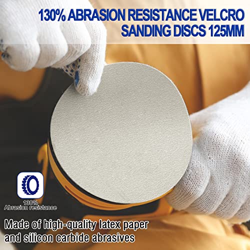 130% ABRASION RESISTANCE VELCRO dischi di levigatura 125MM: I dischi abrasivi a gancio e ad anello appena aggiornati, aumentano la resistenza all'abrasione del 30%. I dischi bagnati e asciutti sono realizzati in carta di lattice di alta qualità e abrasivi in carburo di silicio, che sono la scelta migliore per levigare e lucidare.