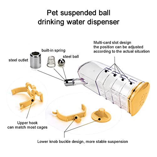 Facile da installare: inserire il tubo di idratazione nel lato della gabbia per animali domestici, aggiungere i supporti a vite e stringere le viti dall'interno della gabbia. È possibile installare o rimuovere facilmente l'approvvigionamento d'acqua per la pulizia e il riempimento.