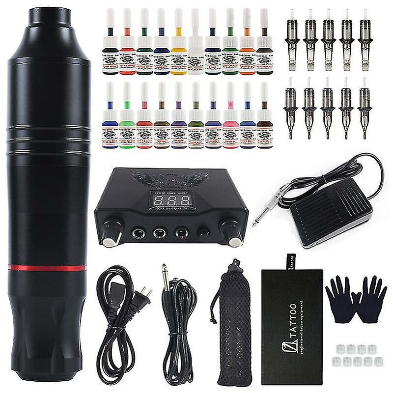 Attenzione: Benvenuto nel mio negozio Spediamo il prodotto dalla Cina, il tempo di consegna è di 7-14 giorniDescrizione:Sicuro da usare per i principianti del tatuaggio.Un buon aiuto per la pratica del tatuaggio.Perché non provare?Caratteristiche:Ottimo per il rivestimento e l'ombreggiatura. Design della maniglia scientifico altamente efficiente. Leggero. a basso rumore. Realizzato in materiale in lega di alluminio, durevole per l'uso. Prestazioni stabili, adatte a qualsiasi artista del tatuaggio. Nessun rumore, nessuna interfaccia audio del motore di vibrazione termica. Tutto in un kit, ci sono penna per tatuaggio, guanti, aghi per tatuaggio (5M1 & 5RL), inchiostri per tatuaggi, coppette per inchiostro per tatuaggi, pedale per tatuaggi, cavo a clip, custodia, cavo di alimentazione e alimentatore. Sistema di alimentazione più sicuro, più stabile e potente, la sua frequenza può raggiungere i 10.000 giri/min, si comporta bene nel tuo tatuaggio arte fai-da-te. Basso rumore e basso