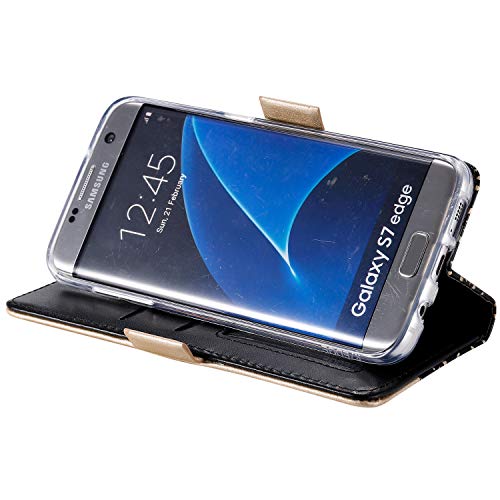 JAWCASA Cover per Samsung Galaxy S7 Edge, Flip Custodia [Magnetica Supporto] [Cerniera in Pizzo] PU Pelle Portafoglio Unico Sottile Funzione TPU Flip Cover a Libro Custodie Protettivo (Nero)