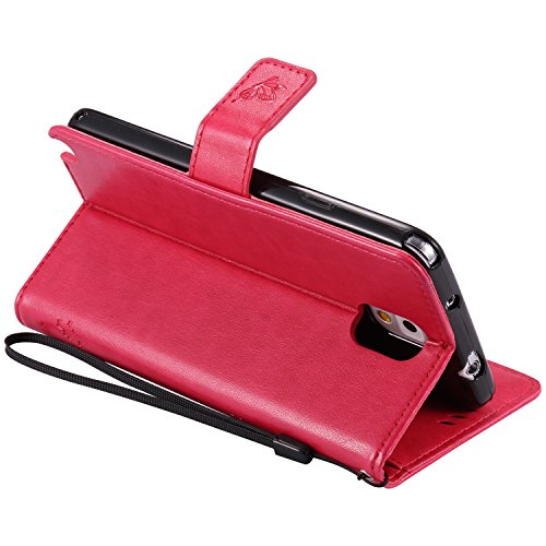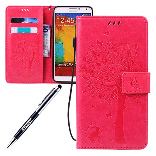 JAWSEU Compatibile con Galaxy Note 3 Custodia Pelle Portafoglio Cover Libro Puro PU Leather Wallet Case Goffratura Gatto e Albero Fiore Modello Supporto Magnetica Bumper Protettiva Cover