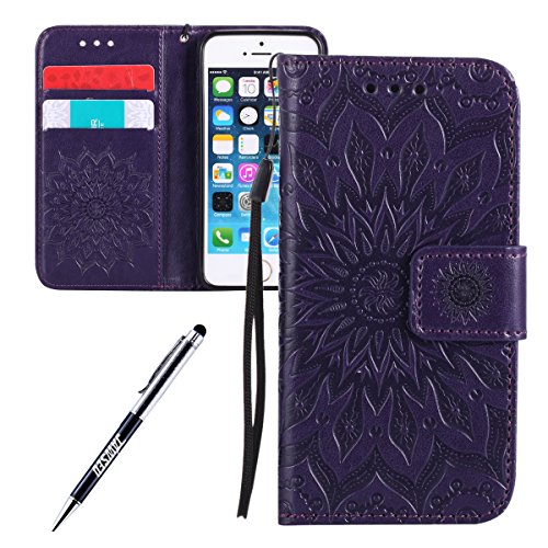JAWSEU Custodia Cover iPhone 5/5S/SE Pelle Portafoglio, Libro PU Leather Wallet [Shock-Absorption] Goffratura Arts Fiore Modello Supporto di Stand Magnetica Protettiva Custodia