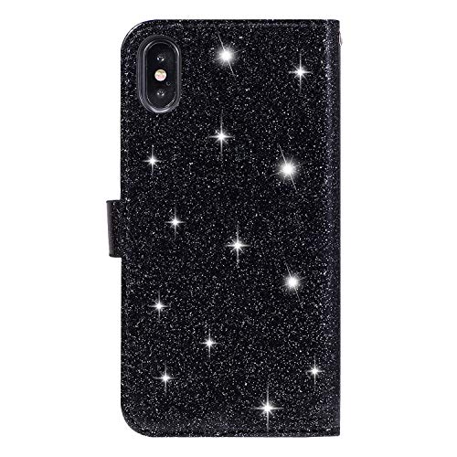 JAWSEU Custodia Cover iPhone XS Max Pelle Portafoglio,Lusso Moda Libro PU Leather Wallet Case Cover Diamante Glitter Bling Amore Cuore Magnetica Supporto di Stand Protettiva Custodia