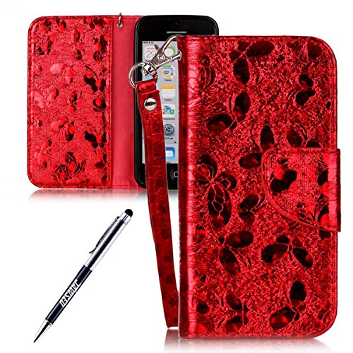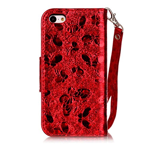 JAWSEU iPhone 5C Custodia in Pelle Portafoglio Cover Lusso Laser Glitter Bling Farfalla PU Leather Folio Case Super Sottile Protezione Completa Bumper Coperture[Shock-Absorption]