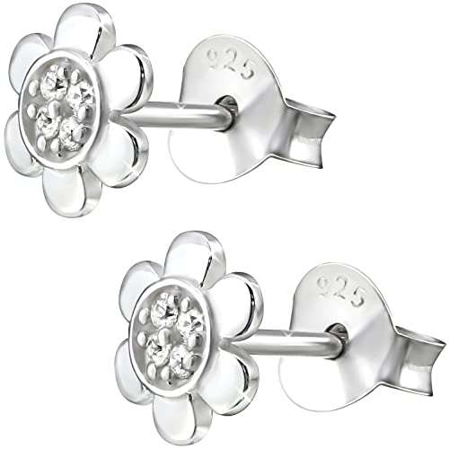 JAYARE - Orecchini da bambina a forma di fiore, in argento Sterling 925, con cristalli di cristallo bianco