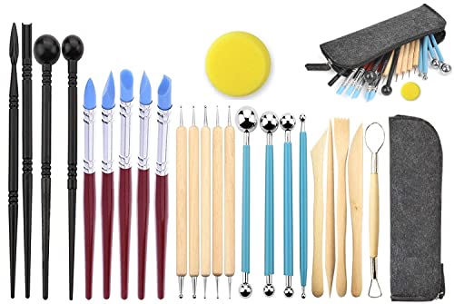 Jaybva - kit per scultura in cernit, attrezzi per scolpire argilla polimerica con punta in gomma per ceramica, pittura su roccia, bambole, modellazione, intaglio, goffratura, fiori di carta, 24 pezzi