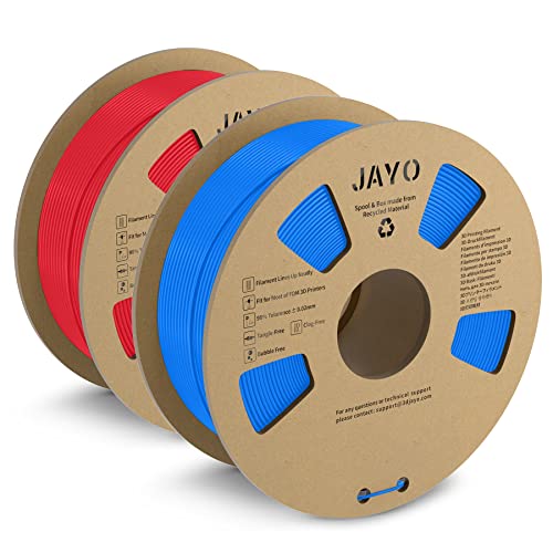 JAYO Filamento PLA Matte 1.75 mm, Filamento per Stampante 3D PLA Matte, Neatly Wound Filament, Precisione Dimensionale +/- 0,03 mm, Bobina da 1,1 kg, 2 Pack, PLA Matte 2.2KG in totale, Blu+Rosso