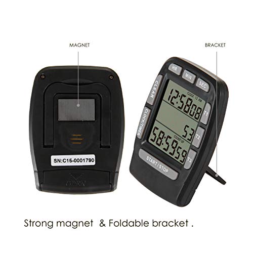 Jayron JR-KT001 Timer Digitale Ampio LCD Timer Digitale a 3 Canali,Timer da Cucina,Timer per Conto alla Rovescia Timer di Cottura Allarme Forte Magnete Staffa Batteria Sostituibile per Bambini Anziani