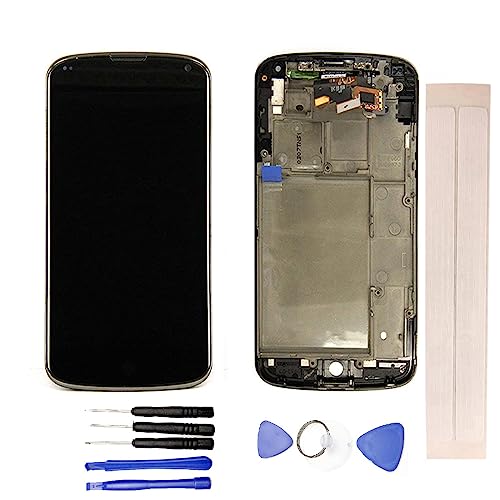 JayTong Schermo Display Completo LCD Digitizer Toccare Schermo Pannello Vetro Assemblea Parti di Ricambio con Strumenti Gratuiti per LG Nexus 4 E960 Nero con Cornice