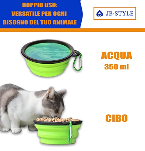 PERFETTA PER I VOSTRI VIAGGI - Design elegante, pieghevole e facile da trasportare questa ciotola per cani e gatti portatile può essere ripiegata per risparmiare spazio. Inoltre, questa ciotola portatile cane è dotata di un moschettone in modo da poterla attaccare ad uno zaino, un passante per cintura o a un guinzaglio e portarla sempre con te quando cammini con il tuo animale domestico. Vi offriamo anche un porta sacchetti per gli escrementi igienizzato in modo da tenere l'ambiente pulito