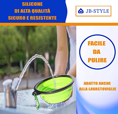 JB-STYLE Ciotola Pieghevole Cane con Moschettone Portatile, Ciotola Cane Portatile con Porta Sacchetti Cane, Ciotola da Viaggio per Cani Gatti (Ciotola più porta sacchetti)