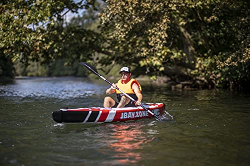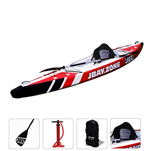 JBAY.ZONE V-Shape Mono, Kayak Gonfiabile Monoposto per Neofiti e Appassionati, Due Camere d'Aria, Drop-Stitch ad Alta Pressione, Pompa, Pagaia a Doppia Pala e Sedile Inclusi, Fino a 159kg, 385x81 cm