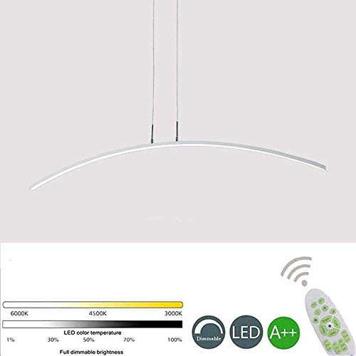 JDDSA VOMI LED Lampada A Sospensione Dimmerabile con Telecomando Lampadario Moderno Arco Luce Pendente per Soggiorno Isola della Cucina Tavolo della Sala da Pranzo Camera da Letto Bar Ufficio,Bianca