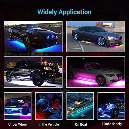 JDKC- 4 Pezzi Luci Sottoscocca per Auto, IP67 Impermeabile, Kit Luci Decorative Sottoscocca 12V RGB, Sincronizza con la Musica, Luci LED RGB (Size: 90CM/35.4IN)
