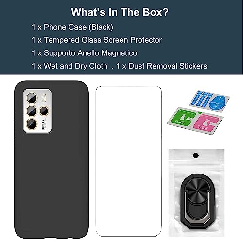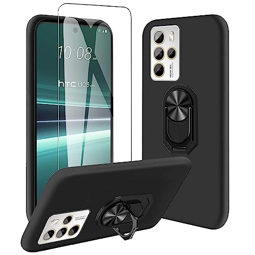 JDXHFF Cover Compatibile con HTC U23 Pro (6.7") Nero e Staffa Girevole a 360° e Pellicola Protettiva in Vetro Temperato - Custodia Morbido Silicone Protettivo TPU Case Black