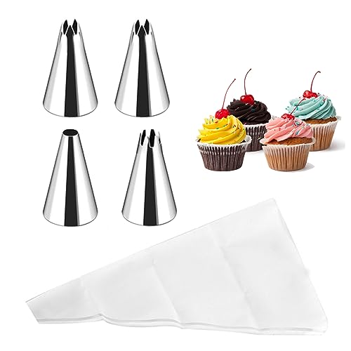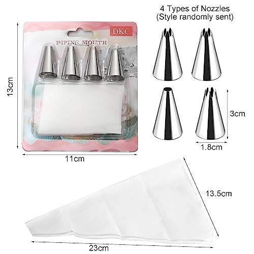 JDXun Sac a Poche Riutilizzabile Lavabile, 4 Beccucci Piccoli in Acciaio Inox per Decorare Torte, Dolci, Biscotti, Cupcake e Pasticceria, Facili da Pulire
