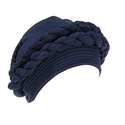 JDYaoYing Donne africane Treccia Torta Turbante Cappello Testa Avvolge Coperture Chemo Cancro Berretti Cap Copricapo, Navy, 6